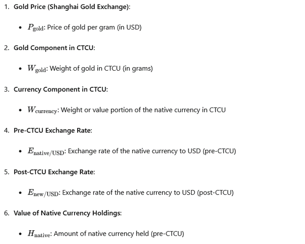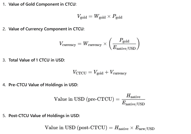- CTCUの金成分:これは、新しい通貨(CTCU)の1単位に含まれる金の量です。これは、新しい通貨の各単位での金の価値を表します。