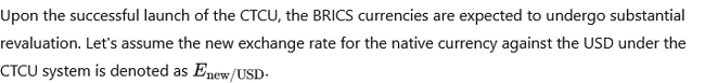 - CTCUの通貨構成要素:これは、インドルピーなど、BRICS国の現地通貨から得られる新しい通貨の部分です。