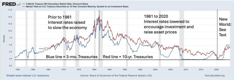 1981年から2020年にかけては、全般的に金利が低下した時期であり、短期金利は長期金利を下回る傾向が見られた。金利を下げると、さまざまな方法で経済が刺激される傾向がある。