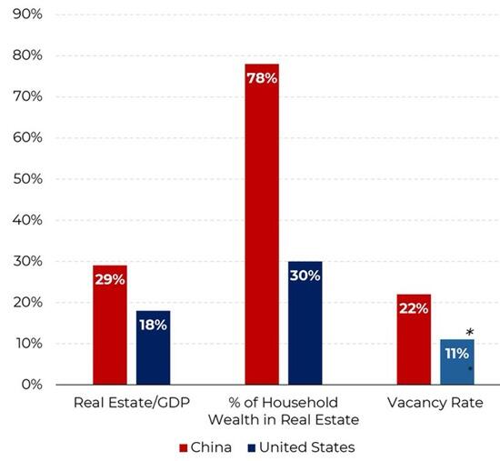 あらゆるもののバブルは世界的であり、そのデフレは世界経済全体に打撃を与えることになります。中国の家計資産が住宅に集中していることを反映したこのグラフを考えてみましょう。家計資産のほぼ80%が住宅であり、当局がバブルを再膨張させようとしているにもかかわらず、バブルは今やはじけつつあります。価格は1級都市で25%から37%下落し、2級都市と3級都市ではさらに下落しています。