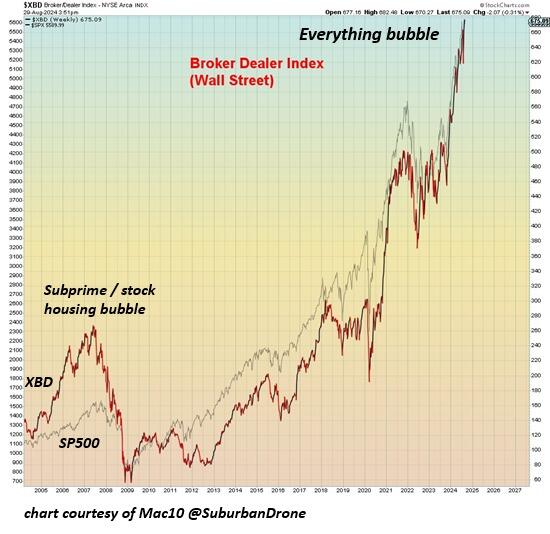あらゆるもののバブルの大きな勝者の中には、はい、驚いていると思いますが、ウォール街があります。ブローカーディーラー指数は、バブルのS&P500株価指数をも上回っています。