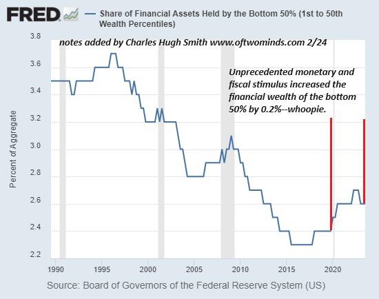 バブルはすべての船を浮かべる潮流だと言われていますが、これは、えーっと、誤報です。なぜなら、下位50%の金銭的利益の取り分は、2.6%というわずかな割合のままだからです。