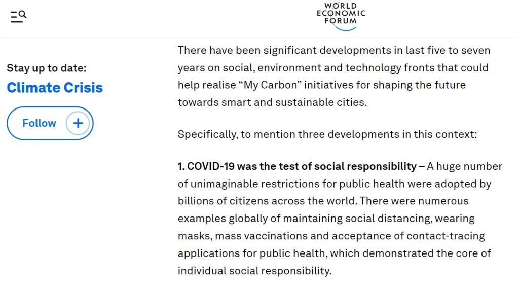 WEFは、15分でスマートシティを実現するための提案を行っているウェブサイトの「My Carbon」ページに、次のような告白を掲載しました。