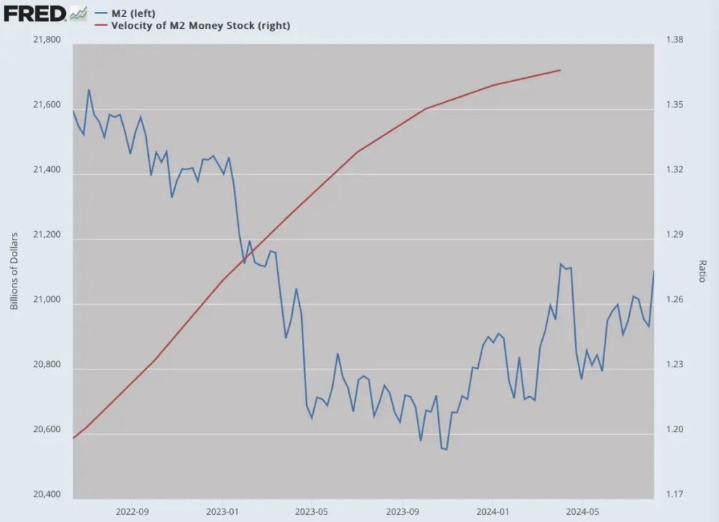 多くの人が気づいていない別の要因があります。マネーストックは、融資基準の緩和、FRBによる債務購入の増加、またはその両方により、すでに増加しています。これは、ロックダウンの数年間のリスク回避に続くマネーの流通速度の必然的な増加と相まって、価格圧力をさらに高めています。これは小売部門に現れるか、金融部門に現れる可能性があります。いずれの場合も、これは経済成長ではなく、通貨価値の低下という形でのその幻想です。