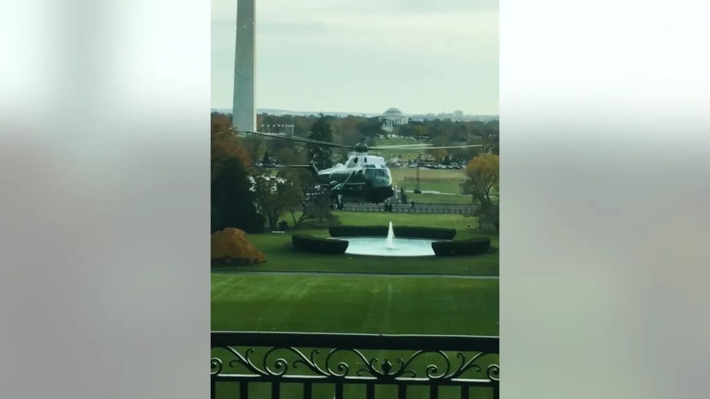 元ファーストレディのメラニア・トランプ氏が、マリーン・ワンのホワイトハウスの窓の外から撮影した写真。