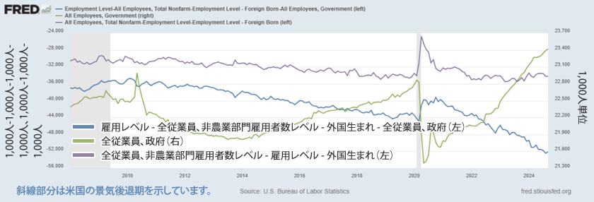 アメリカで雇用されている移民を差し引いた場合、その差額はどうなるか見てみましょう。