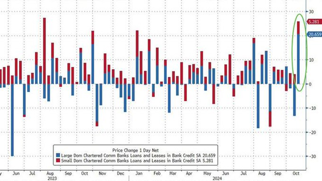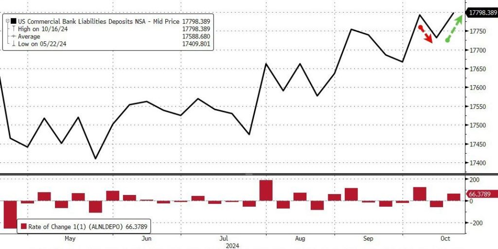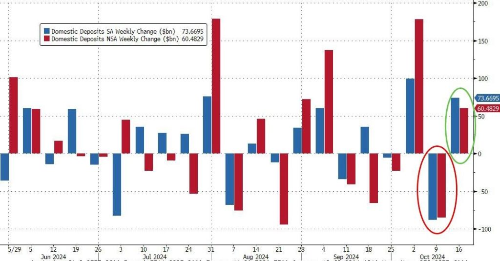 先週の巨額の預金流出(これは延滞税の支払い期限が迫っていることに多少関連していると推測されます)に続き、米国の銀行では10月16日までの週に預金(季節調整済みベース)が再び急増(840億ドル増)しました(本日発表された最新データ)…
