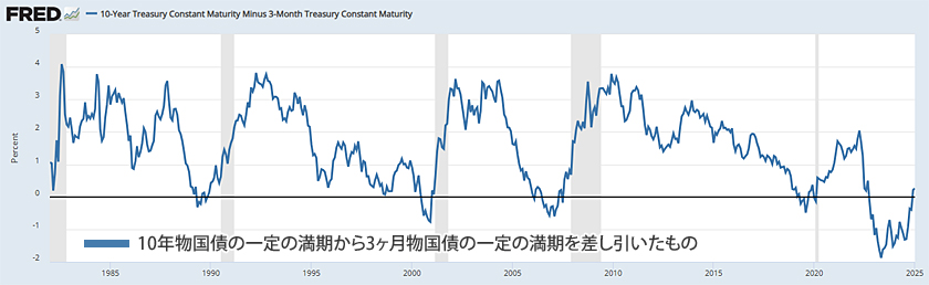確かに、利回り曲線のすべてが逆転しているわけではいません。まだマイナス領域にあるものの、ゆっくりとプラスのスプレッドに向かっている小さな部分が1つあります。それは10年物と3か月物の米国債の利回りです。