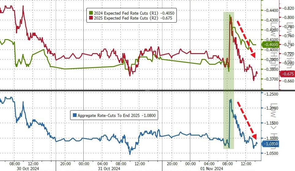 しかしその後、トレーダーらは、雇用統計は(ハリケーンの影響を除けば)「成長不安」を引き起こすほど悪くはないが、パウエル議長が来週利下げしてインフレをさらに押し上げるのに十分な根拠を与えるほど悪いと認識し、すべてが崩れ始めました。