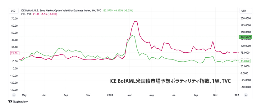 しかし、注目すべきは、現在のMOVE指数とVIX指数を2020年と比較することです。ご覧のとおり、当時は株式市場と債券市場は、近い将来に大きなリスクはないことに同意していました。