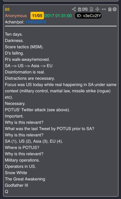 トランプが初めて情報を漏らしたのは11月5日でした。11月5日デルタドロップ88 – 10日間。暗闇。軍事作戦。
