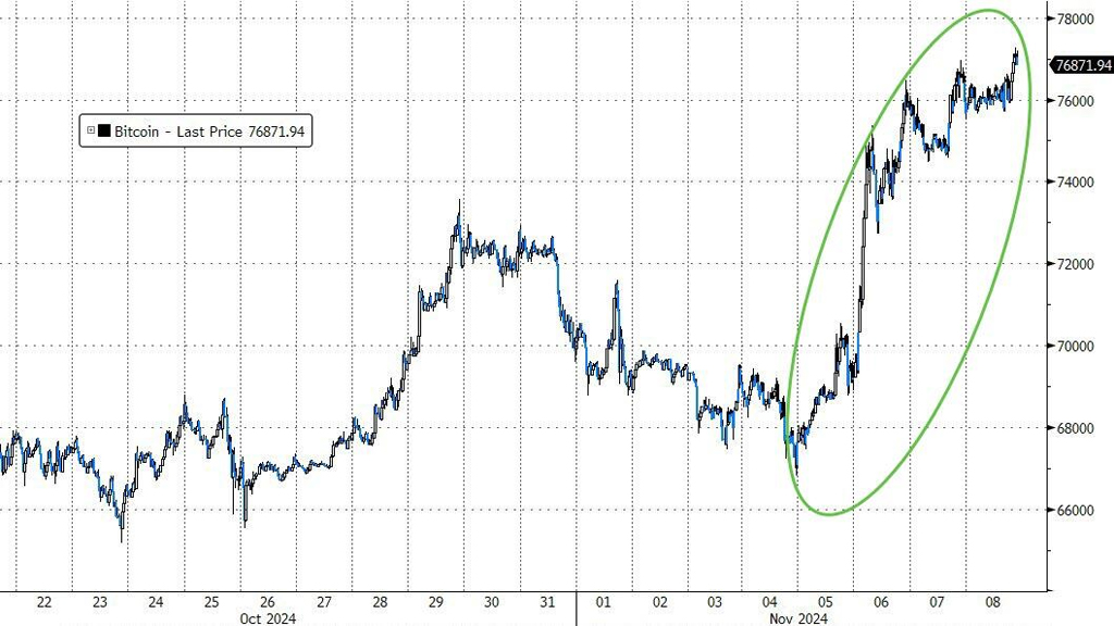 Bitcoinはトランプ氏の当選後、今年2番目に好調な週となり、記録的な高値を更新し、7万7000ドルを超えました…