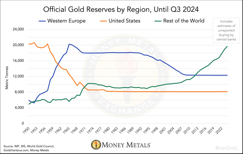 だからこそ、欧州は各国中央銀行や世界中の人々に金を所有するよう奨励するインセンティブがあるのです。金が世界中に広く行き渡れば、金の流動性は高まり、紙幣ゲームが終焉を迎えた際に、新しい通貨制度の基盤としてより適したものとなります。