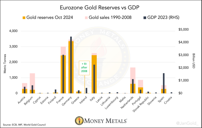 - 現在のユーロ圏は当時、世界のGDPの24%を占めながら、金準備のほぼ半分を保有していました。