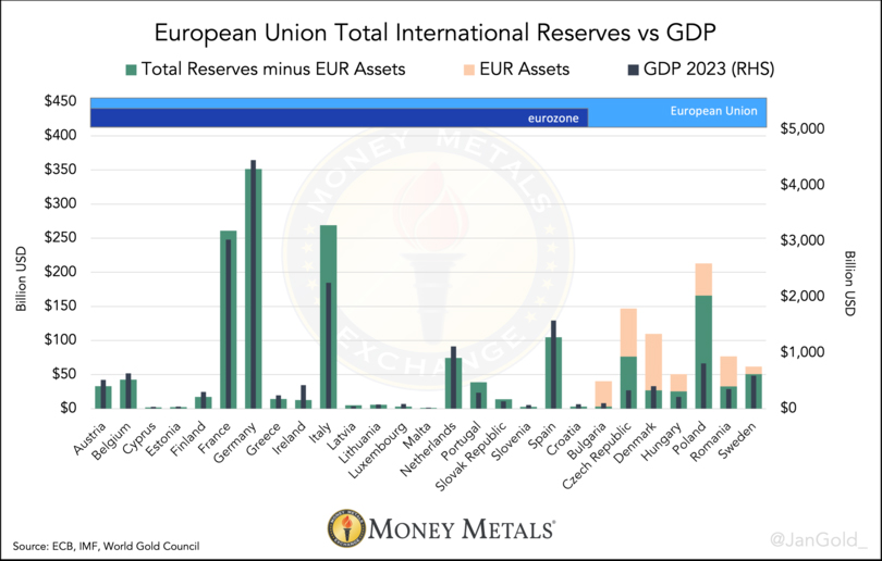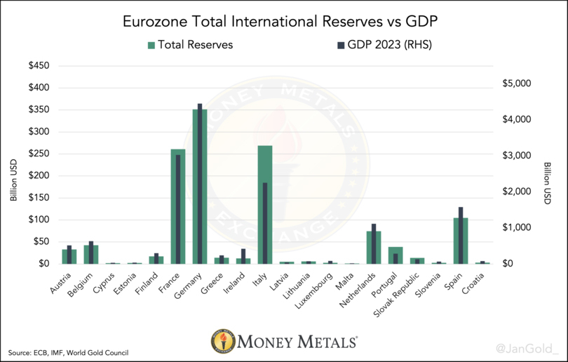 ラチコフスキ氏は先日、欧州の公式金準備はGDPに比例して均等に分配されるべきであり、それは「近い将来…新たな金本位制となるでしょう」と主張しました。同氏の主張は、欧州が金本位制への準備を進めていることを示す数多くの証拠のひとつです。