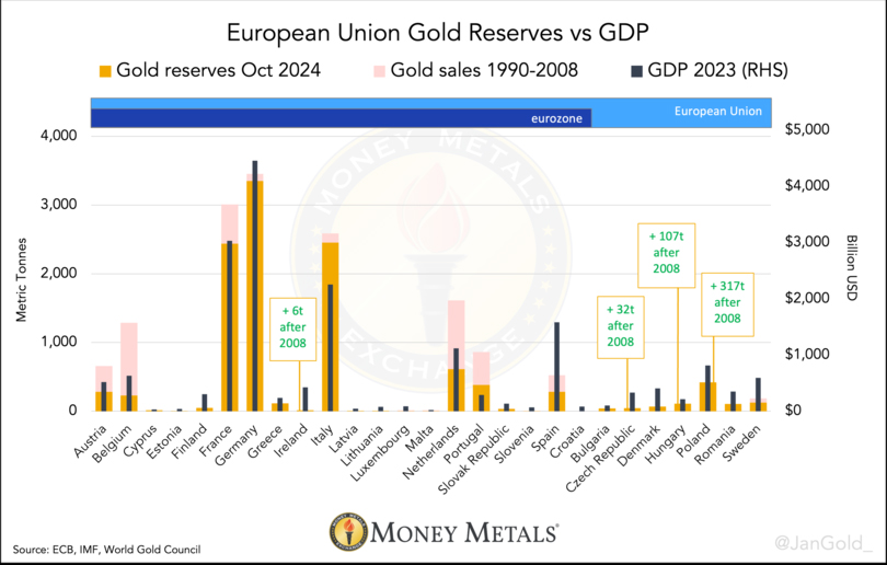設計上、欧州連合(EU)のすべての国は、ユーロ圏ではないものの、いずれユーロを採用することになっています。金準備に関しては、東欧諸国の中央銀行は歴史的に西ヨーロッパよりも黄色い金属を保有していませんでした。そのため、2018年には、東欧最大の経済国がキャッチアップするために金購入を開始しました。