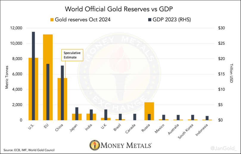 なお、ラチコフスキ氏は、2023年のデータに基づくフランス銀行と同じ金とGDPの比率を挙げています。今年に入って金価格が大幅に上昇しているため、現時点での平均比率はさらに高くなっているはずです。