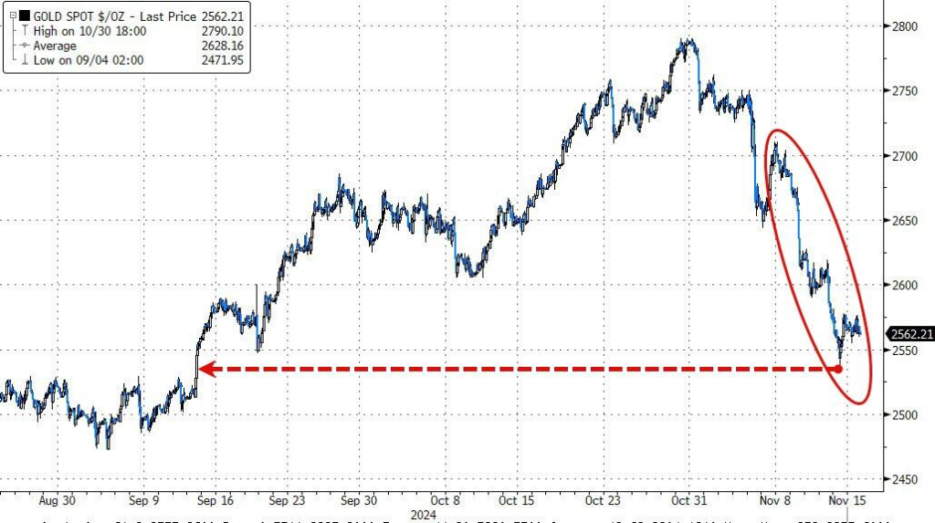 打撃を受けたのは債券と株だけではなく、金は2021年6月以来最悪の週となり、2か月ぶりの安値に落ち込みました…