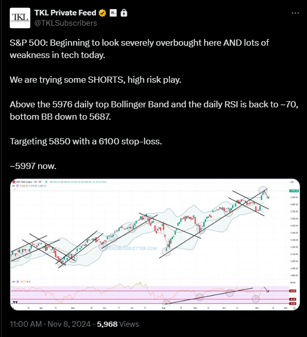 先週、株価はこれに反応し始めました。8日前、私たちはプレミアム・メンバーのプライベート・フィードでS&P 500のショートポジションを取りました(下図参照)。誰もが強気だった中、私たちは下落を先取りしました。以下のリンクから登録して、これらのリアルタイム・アラートにアクセスしてください。 http://thekobeissiletter.com/subscribe