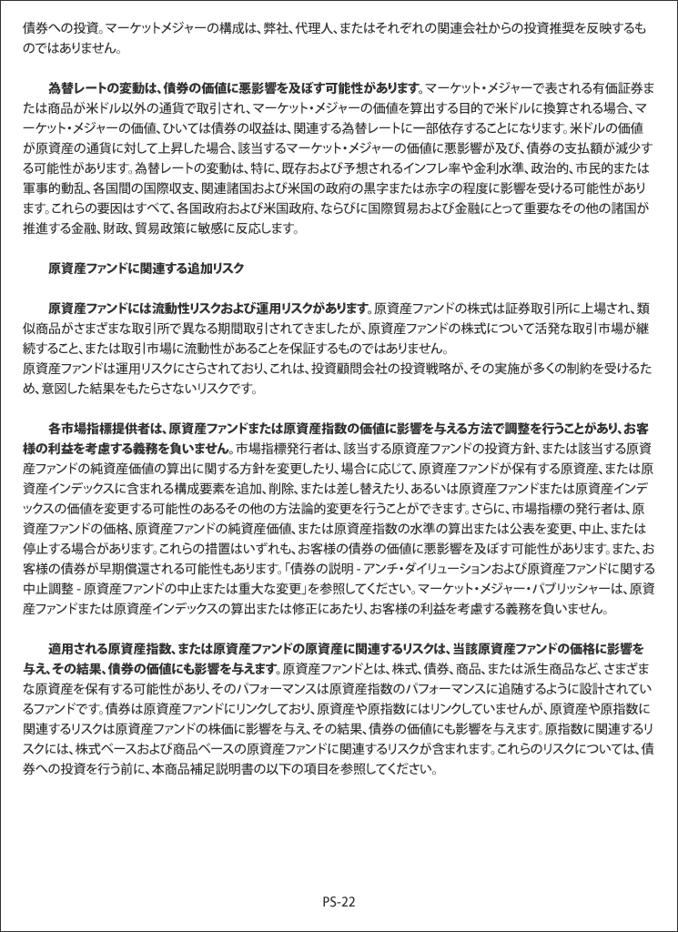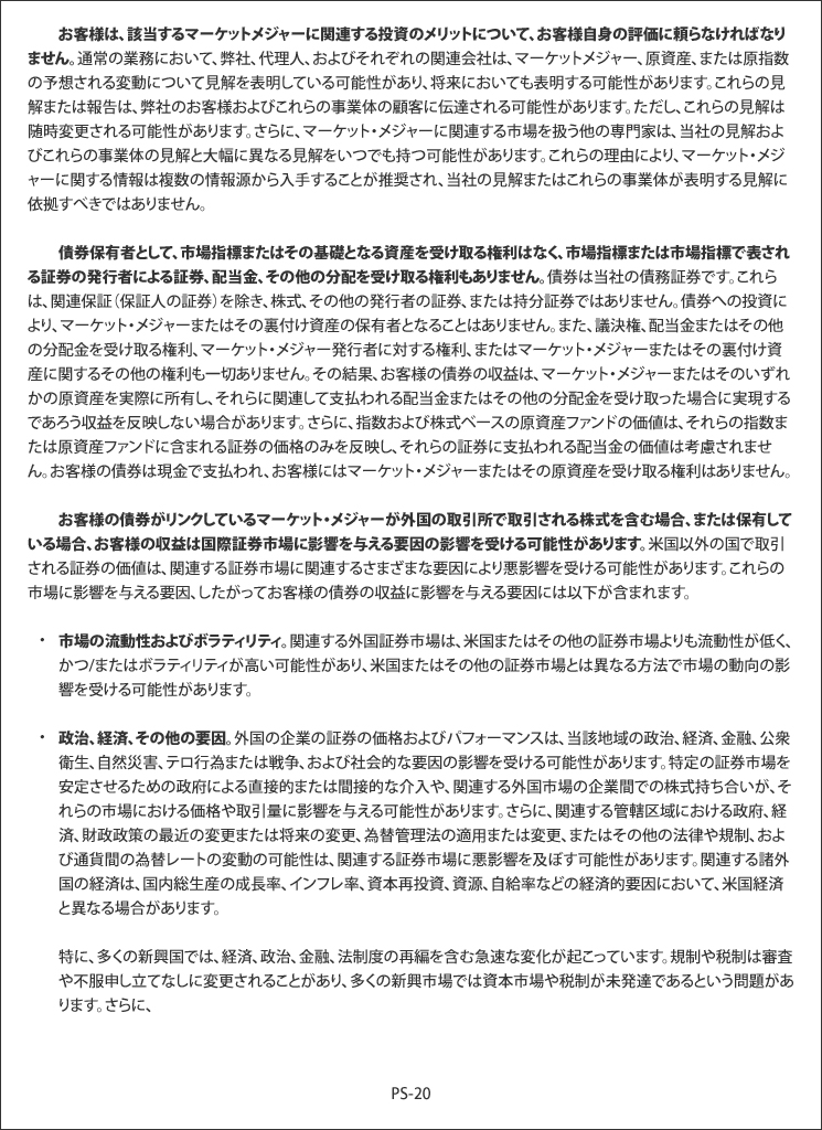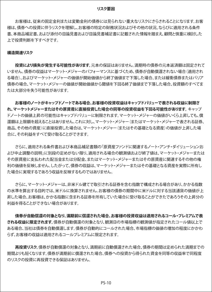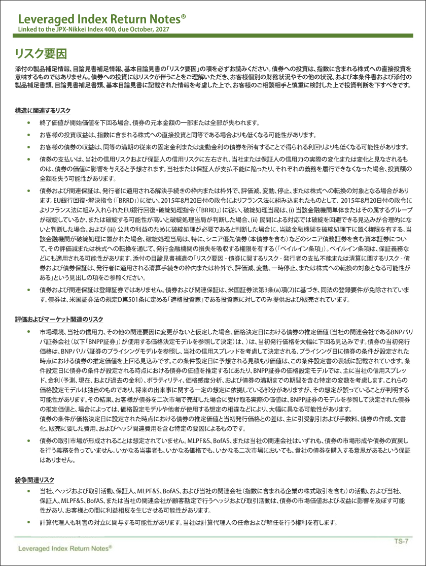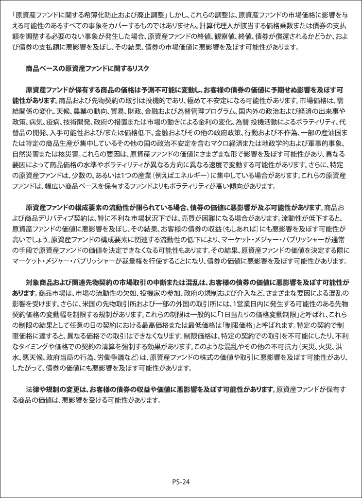 結論として、先週金曜日に議論した4種類の「キャリー・トレード」に加えて、昨年半ばに始まった日本株のFOMOから利益を得るためにブローカーが顧客に販売するあらゆる種類の投資に付随する大量のデリバティブについて検討する必要があります。そこから来る売り圧力が日銀が引き起こした火に油を注ぎ続けることは、かなり直感的です。これらの商品には多くの暗い側面と影響があり、それらに問題が発生すると、世界の金融システムのチェス盤のどこかに予期せぬ影響を与える可能性があります。「未知の未知」の大きさを理解していただくために、この記事の例として共有したメモの1つに添付された「リスク要因」のリスト全体を以下に掲載します。