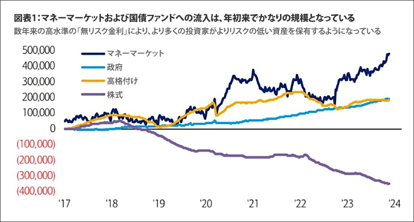 » ここ数週間に加速した、株式(Chart1)からマネーマーケットファンドへの安全資産への流れは止まらない。