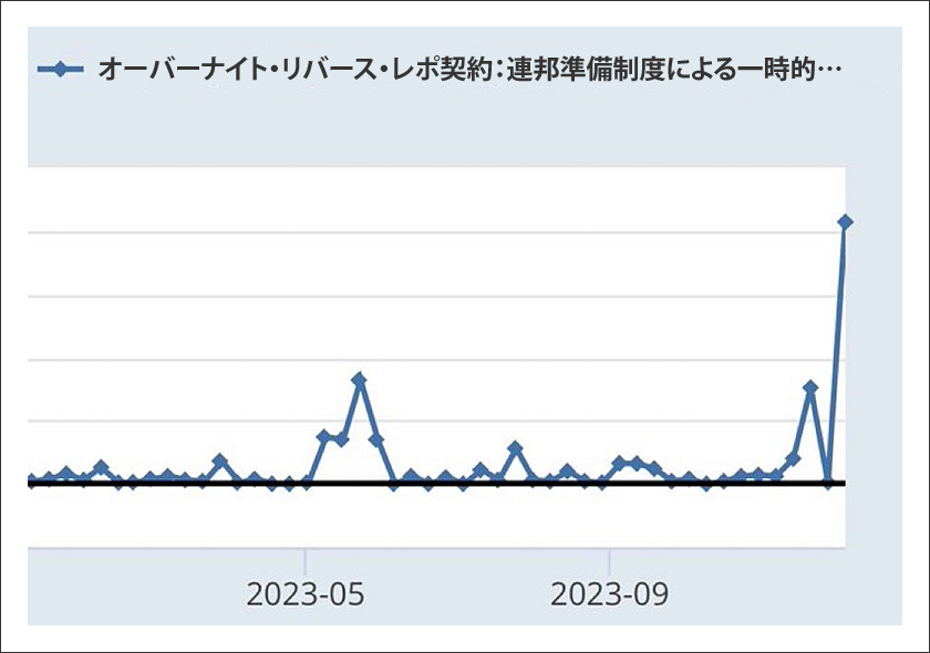 » オーバーナイトREPO契約は、今年初めにSilicon Valley Bank、 First Republic Bank、Credit Suisseが破綻したときの数倍のレベルで急上昇している。 (Chart 2)