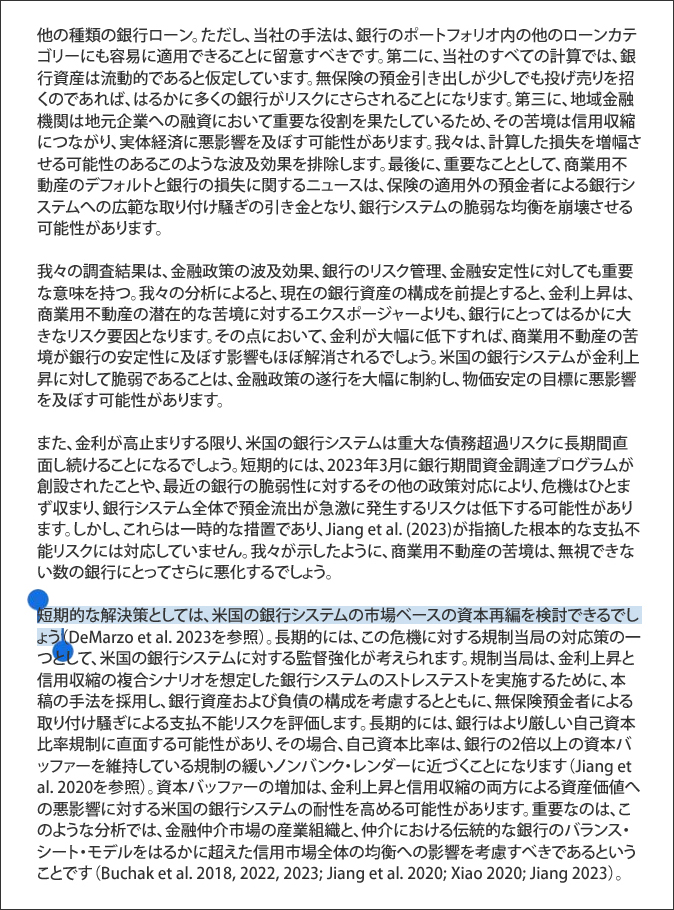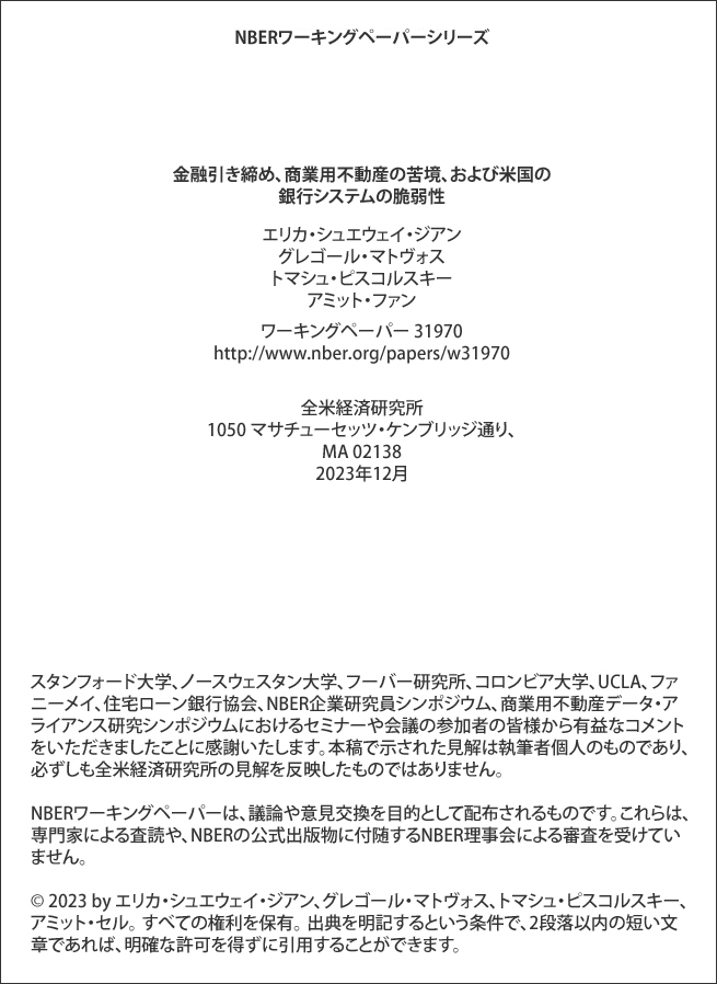最初に崩壊しそうなセクターはどれでしょうか? 商業用不動産です。12月に発表されたばかりの全米経済研究所の推定値 [Picture 2] は、銀行にとって以前のように無視するのが難しい、最悪を通り越した状況を描いています(以下の引用記事)。NBERによると、CREローンの14.3%がマイナスのエクイティ状態です。残りの多くは、現在の金利環境でのLTV(平均80%)の高さとほぼ2倍の負債コストにより、キャッシュフローと借り換えの問題に直面すると予想されます。全米経済研究所(NBER)によると、デフォルト率は約14%で、米国の銀行はすでに1,000億ドル以上の損失に直面しています [Picture 3] 。FRBの利下げがここでは役に立たない場合、どのように問題を解決すればよいのでしょうか? NBERは、「短期的な解決策としては、米国の銀行システムの市場ベースの資本再編が考えられる」と示唆しています [Picture 4] 。翻訳:銀行は救済を必要としています。