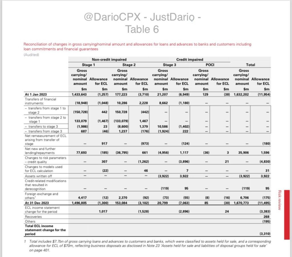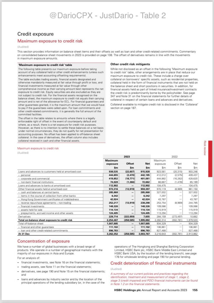 全体として、HSBC内の総純信用リスク・エクスポージャーは、オンバランス・シートとオフバランス・シートの両方の項目を合わせて、2023年には約900億ドル増加して3兆3030億ドルになりましたが、銀行は他の銀行とは対照的に、信用損失が減少しました🤡