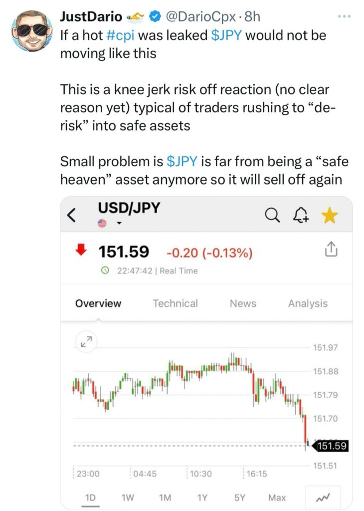 それでは、ソーシャルメディア上の「VIP」アカウントが想定したほど、米国のCPI(消費者物価指数)が漏洩したのでしょうか? いいえ、漏洩していません。私はすぐにそのことを指摘しました。