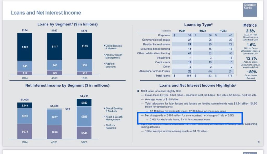 Goldman Sachsの数字が良すぎることは、今では明らかだと思います… 良すぎて本当とは思えません。実際、現在の四半期の純信用損失引当金がGoldman Sachsの消費者セグメントにのみ影響し、卸売セグメントにはまったく影響がなかったことを考慮すると、その通りです。