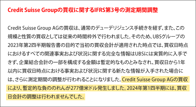 翻訳:UBSは、取得した資産を時価評価することによるマイナスの影響を除外して、CS事業からの総収益を認識しています。