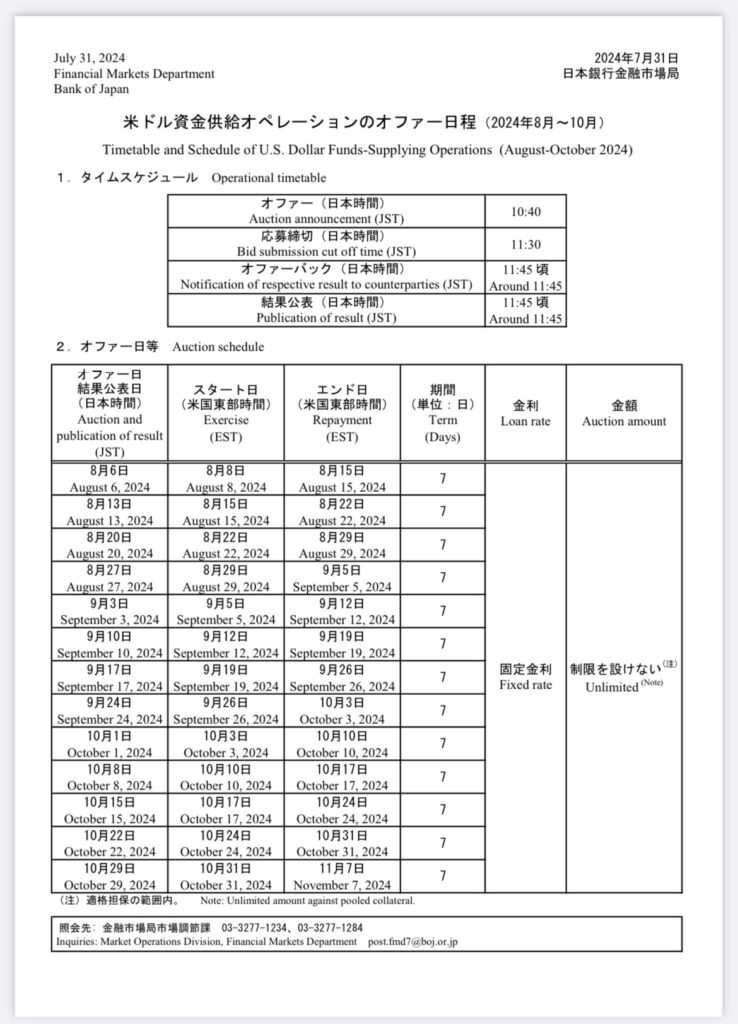 これはどのくらいの頻度で起こるのでしょうか? 毎週です。これは非常に重大なことなので、日銀は銀行がパニックに陥らないように事前に固定スケジュールを発表しています。