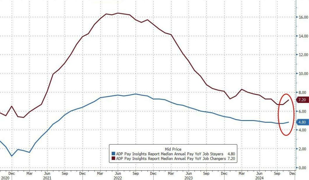 金曜日の雇用統計ではさらに詳しい内容が発表される予定ですが、賃金上昇率が急激に回復したことを示す今日のADPレポートは、FRBが今、古くなった賃金データに取り組んでいることを示唆しています。