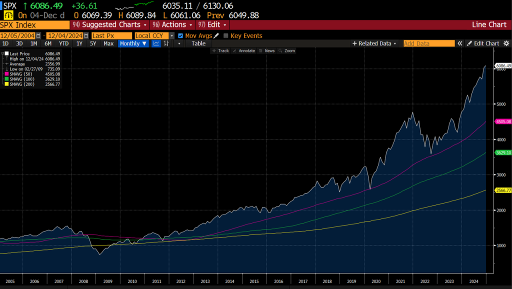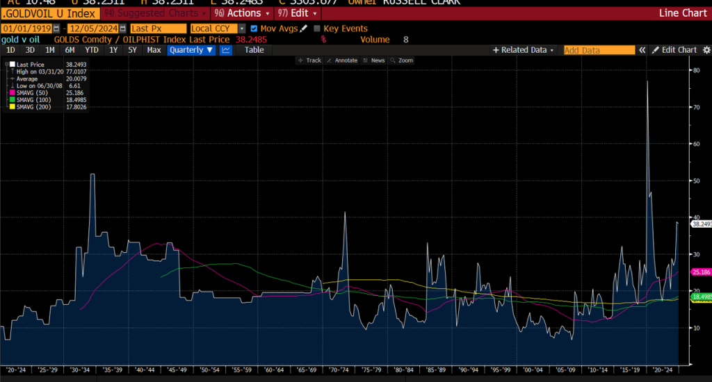 別の見方をすると、市場は間違いなく、米国政府が財政赤字をただのランチとして扱っていることに気づいています。そのため、金が国債を上回るパフォーマンスを見せています(私のGLD/TLT取引)。これはその取引の長期グラフです。