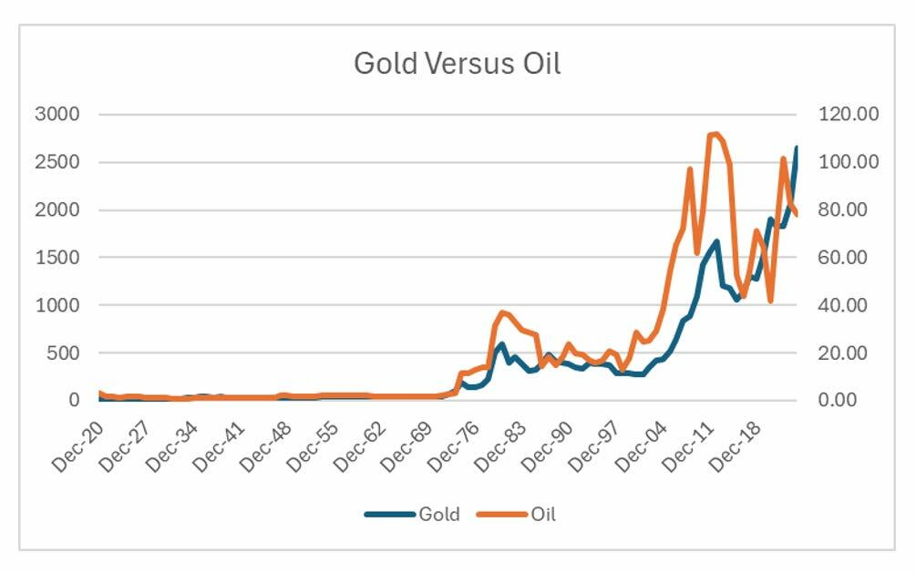 一般的に、金価格と原油価格が異なる方向に動くことは珍しいです。今年は金価格が大幅に上昇している一方で、原油価格は下落しています。