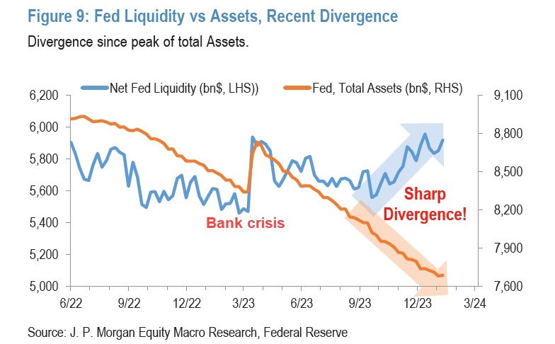 Picture 2で示されているように、BTFPは実質的には変装したFRBのQE(量的金融緩和)であり、システム内のネット流動性が再び上昇し始めたことで株価バブルが再膨張したことは偶然ではありません。