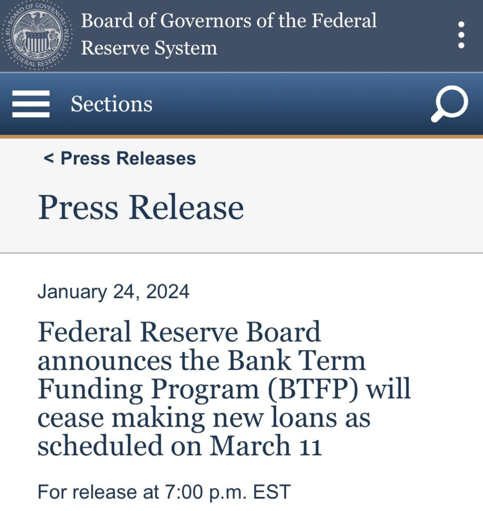 「3か月ほど前の投稿(TwitterX)で説明したように、大手銀行もBTFPの恩恵を受けています。このプログラムが来年3月に延長されない唯一のシナリオは、ジェローム・バーンズ率いるFRBが完全に正気を失う場合だけです」