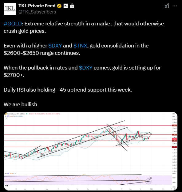下図のように、金価格が2500ドル台に下落した際、当社は強気の警告を複数回発しました。