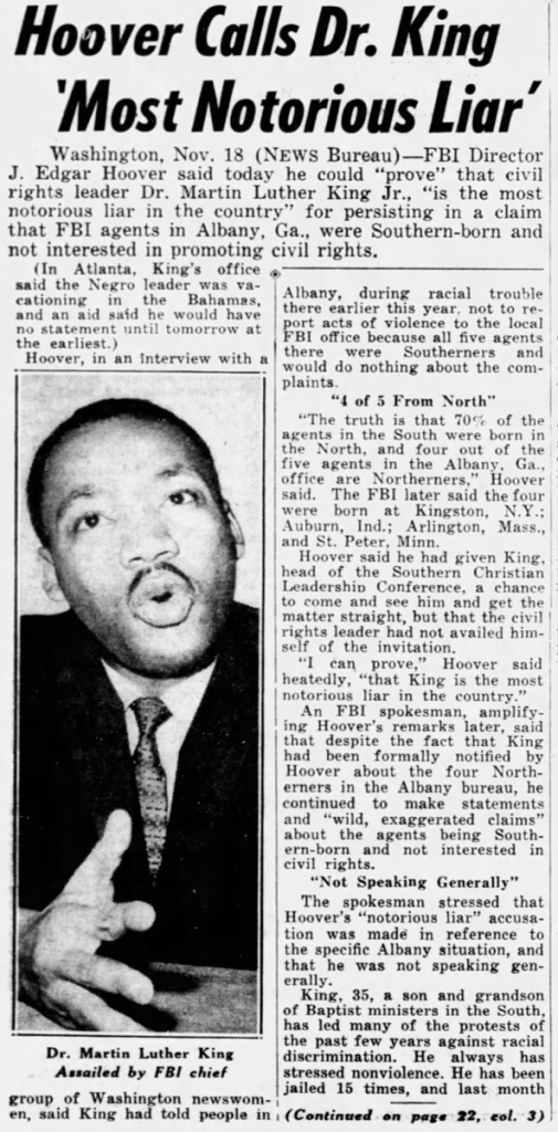 フーバーにとって、キング牧師はヒーローではありませんでした。