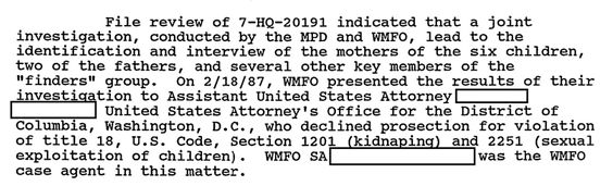 虐待と悪魔崇拝の儀式に関する膨大な証拠があったにもかかわらず、ワシントンD.C.の米国連邦検事は起訴を断念しました。母親たちが発見され、おそらく同意していた可能性があるため、この事件は複雑化しました。関与した米国連邦検事は、控え目に言っても興味深い経歴の持ち主です。