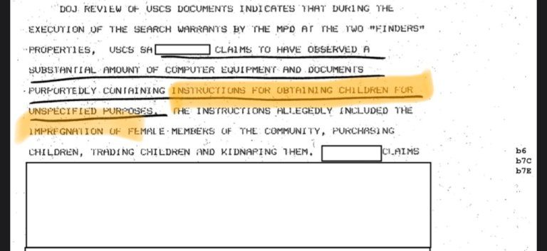 FBIの報告書41ページには、ワシントン・ポストの記事へのリンクが含まれており、その記事では、ある不審な物件の近隣住民が、その物件の住人は「人助けを好む団結したフェミニスト集団であり、カルト集団ではない」と語っています。