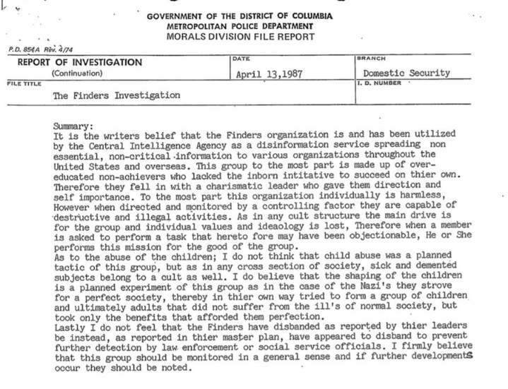 67ページのD.C.メトロ警察も、The FindersはCIAの心理作戦の一種であるというかなり曖昧な理論を提示しましたが、明白な結論には至りませんでした。
