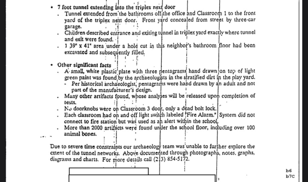48-49ページには、マクマーティン・プレスクールでトンネルが発見されたこと、五芒星や骨も発見されたことが記載されています。 これらはすべて、下記に示す記述的な報告書の一部です。 そして、最下部には、調査を打ち切るための標準的なWTF隠し手がやってきます。