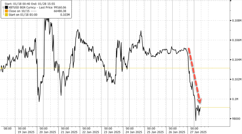 今朝、トレーダーたちの頭にある話題はただ一つ、長年にわたるAIの強気トレンドを覆し、チップ株を過去最高値に押し上げる可能性があるもの、それは、一晩で書かれた「Goldman、中国のDeepSeekがAIの『スプートニクの瞬間』となるか問う」というタイトルの記事で指摘されている、OpenAIのChatGPTに対する中国のDeepSeekの(極めて)安価な対応です。