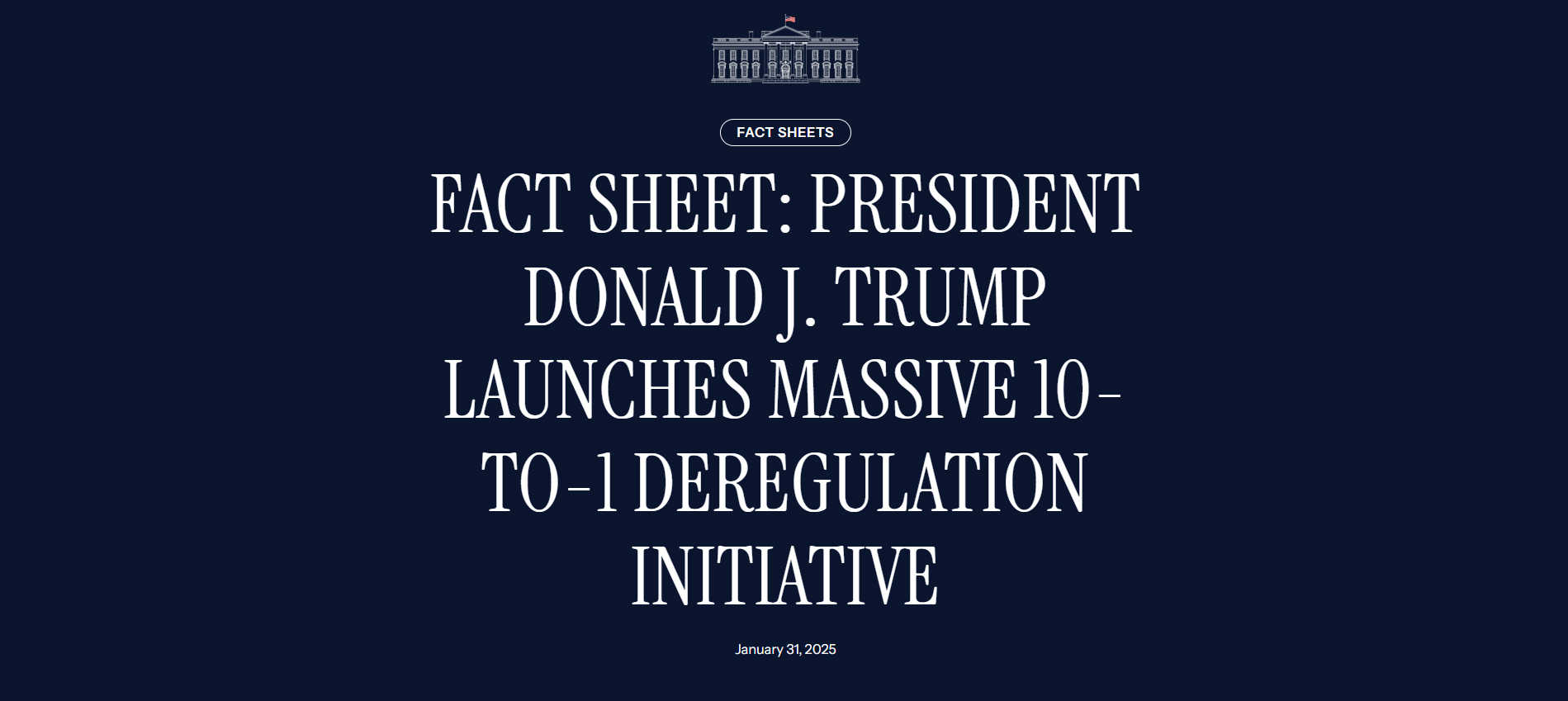 新たな規制が発令されるごとに10の規制を撤廃する:本日、ドナルド・J・トランプ大統領は規制緩和を通じて繁栄を解き放つための大統領令に署名した。