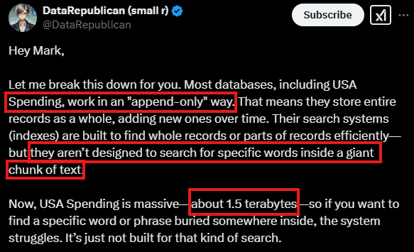現在、米国政府の支出データベースは「追加専用」方式で構築されています。