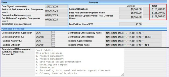 これには、NIH博物館でのアンソニー・ファウチ展に関する16万8000ドルの契約も含まれていました。
