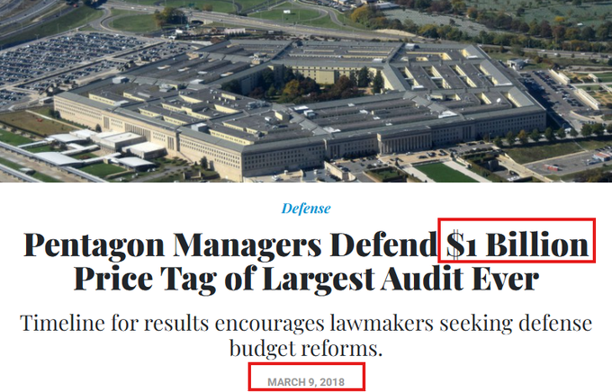 米国防総省は、2018年の財務諸表の監査に10億ドルを費やしましたが、監査に落ちました。