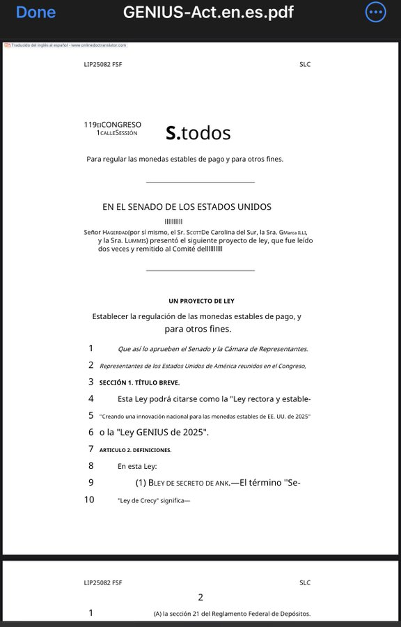 ✍ 名称: 「2025年GENIUS法」または「米国ステーブルコインのための国家イノベーション指針および設立」は、米国におけるステーブルコインの発行、運営、監督に関する法的枠組みを提供することで、米国におけるステーブルコインの規制を目的としています。