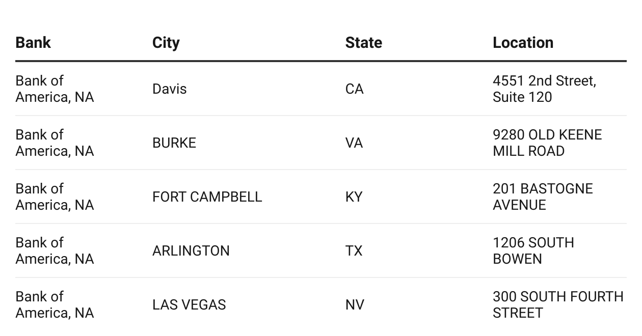 U.S. Bank、Wells Fargo、PNCは、通貨監督庁(OCC)に閉鎖予定を通知していた金融機関のひとつでした。